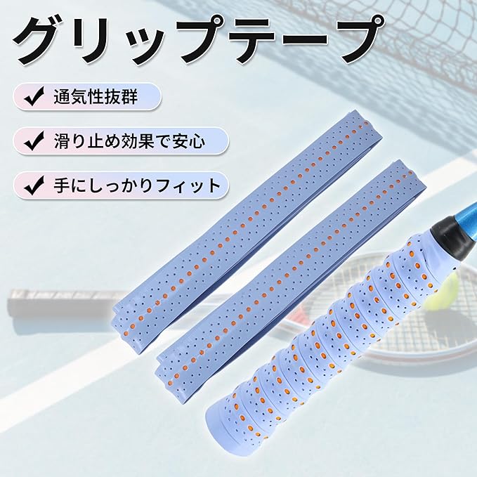グリップテープ テニス バドミントン 2本セット 多孔型 グリップ テープ 通気性 釣り竿 自転車 野球 ラケット用 ウェットタイプ