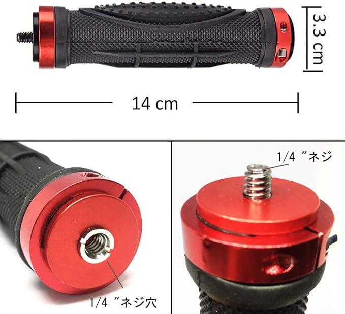カメラグリップ スタビライザー 手振れ 軽減 1/4インチネジ付き ラバーグリップ 一眼レフ/ミラーレス/デジカメ/ビデオカメラ用 一脚 延長ポール および電話クリップ(幅50-88mm)