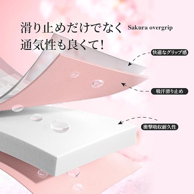 グリップテープ「桜限定デザイン」(3本入り/6本入り)テニスラケット ゴルフバー用グリップテープ プロの滑り止め | 吸汗 衝撃吸収 通気性