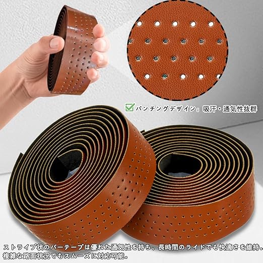 バーテープ ロードバイク用 ザー調 PU+EVA製 自転車用グリップ バーテープ 穴あき 滑り止め 左右セット ブラウン