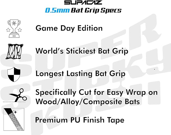 Supacaz (スパカズ) スーパー スティッキー クッシュ マイアミ ベースボール バットテープ - ソフトボール バットラップ - ハイパフォーマンス プロ ビッグリーグ バットグリップ - 0.5mm