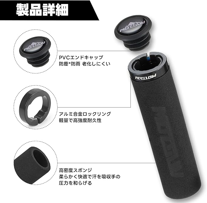 【アルミロックオン】軽量かつ高強度のアルミ合金ロックリング採用。ワンタッチで確実に固定され、走行中のグリップ緩みを完全防止。プロ仕様の信頼性で安心の走行をサポートします。