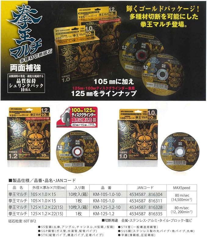 山真製鋸(Y'sGOD JAPAN) 多種材切断砥石 拳王マルチ KM-105-1.0-10 105x1.0mm 10枚入