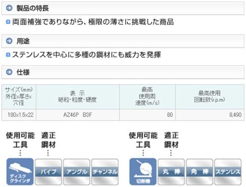 両面補強でありながら、極限の薄さに挑戦した商品です。 力を入れず、軽く押すだけで切断できます。 ステンレス鋼の切断に最適です。 切断時の焼き、バリが少ないです。