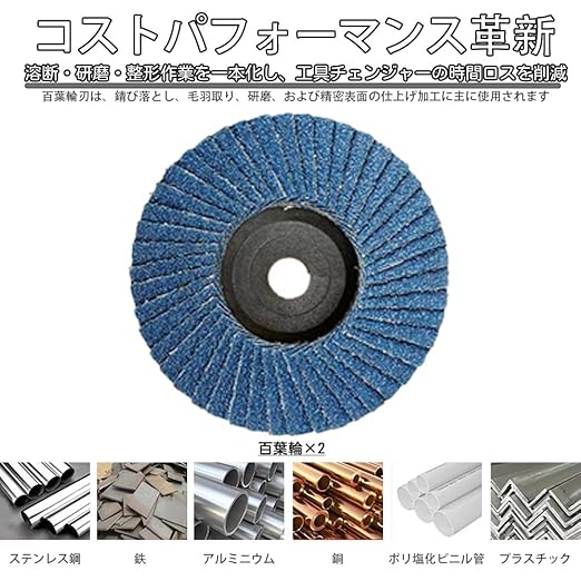 【全8種プロ用刃セット|多素材ワンストップ対応】 金属/木材/石材/樹脂用の専門刃8枚を厳選収納(二重網樹脂切断 2・木工プラスチック 1・百葉輪 2・石材切断 1・研磨 2)。サイズ詳細は商品画像参照 - あらゆる切断・研磨作業に対応可能。 【超耐摩耗設計|熱変形防止の高精度加工】 高級合金鋼に特殊熱処理+耐熱コーティングを施し二重保護。高速回転時の摩擦熱分散により刃の軟化・変形を抑制。従来品比150%の寿命向上(※自社比較試験)で金属切断も安定持続。 【現場検証済み性能|プロが認める切断品質】 金属パイプ切断から石材加工までプロ現場基準をクリア。特殊エッジ形状でバリ発生を最小化、切断面が平坦に仕上がるため二次加工工数を削減(研磨時間平均37%短縮効果)。 【業界標準互換|工具選びの手間を解消】 国内主要メーカー製アングルグラインダー(115mm/125mm基準)に即装着可能。溶断・研磨・整形作業を一本化し、工具チェンジャーの時間ロスを削減。 仕上げに必要な刃がセットに! 金属切断刃:高強度合金鋼製。金属を速く滑らかに切断。石材切断刃:石・タイル等の脆い材料に◎。プラスチック・木工刃:木材はもちろん、プラスチック・アクリルもOK。百葉(パレット)刃:サビ落とし、バリ取り、研磨に便利。研磨刃:工作物の精密な寸法調整・仕上げ用。