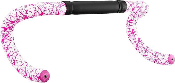 Supacaz (スパカズ) サイクリング バーテープ - Super Sticky Kush - Splat - Limited - White w/Neon Pink + Neon Pink Star Plugz