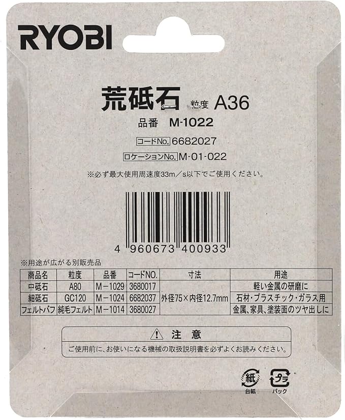 京セラ(Kyocera) 旧リョービ 砥石 M-1022 ミニ卓上グラインダ用 75 13 12.7mm #A36 6682027