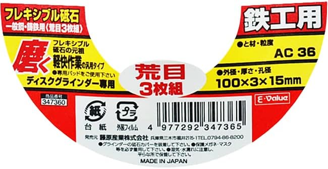 イーバリュー(E-Value) フレキシブル砥石 スキルタッチ 3枚組 一般鋼用 荒目 AC36 100 3 15mm