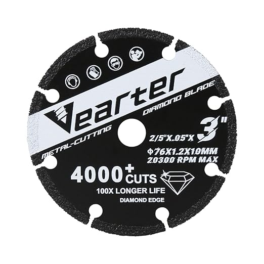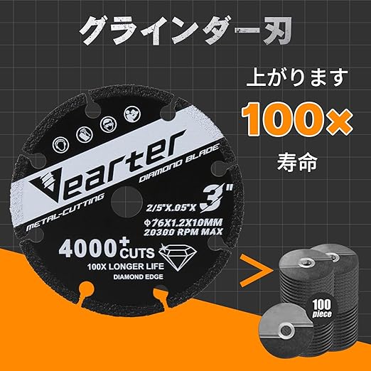 グラインダー 刃 ダイヤモンド 76mm x 10mm (3 x 2/5")切断砥石 金属・鉄工用 4000回以上のカットができるカッティングホイール ステンレス鋼、鋳鉄、石膏、鉄筋、木材など硬い素材切断用