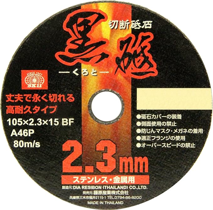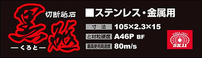 SK11(エスケー11) 切断砥石 黒砥 ステンレス・金属用 A46P 10枚入 105 2.3 15mm