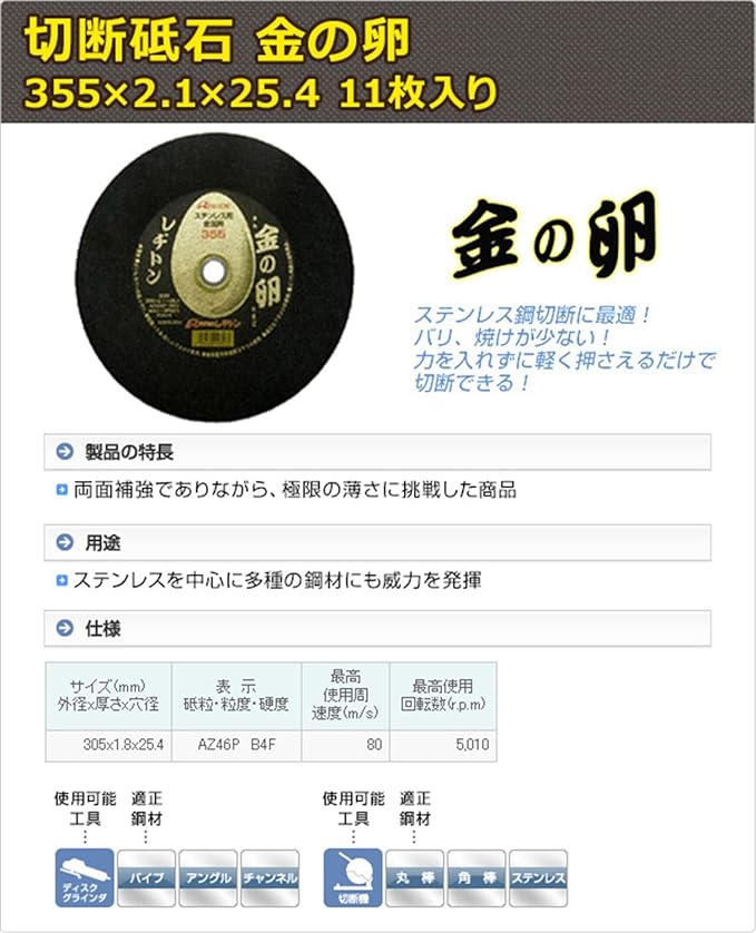 レヂトン レヂトン 切断砥石 金の卵 355 2.1 25.4 (11枚入り) 355 -