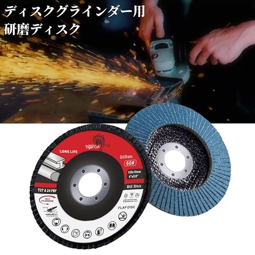 スパークディスク ディスクグラインダー用 115mm 研磨ディスク ジルコニウム ステンレス鋼 鋳鉄 板金用 サビ除去 フラップディスク (粒度60)