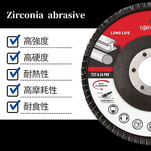 【商品詳細】外径Φ115mm、穴径Φ22.2mm、回転数15000回転/分、素材:ジルコニア砥材