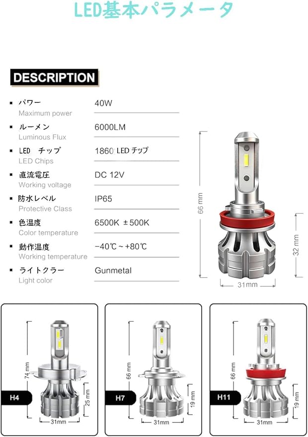 LEDヘッドライトH11 Hi/Lo 50W 20000流明 12-24V 6500K 車検対応 19980lm ルーメン 明るさ300%アップ 取り付け簡単 ミニサイズ 高輝度 ファン付け ドライバーユニット搭載 車用LEDバルブ(グレー)