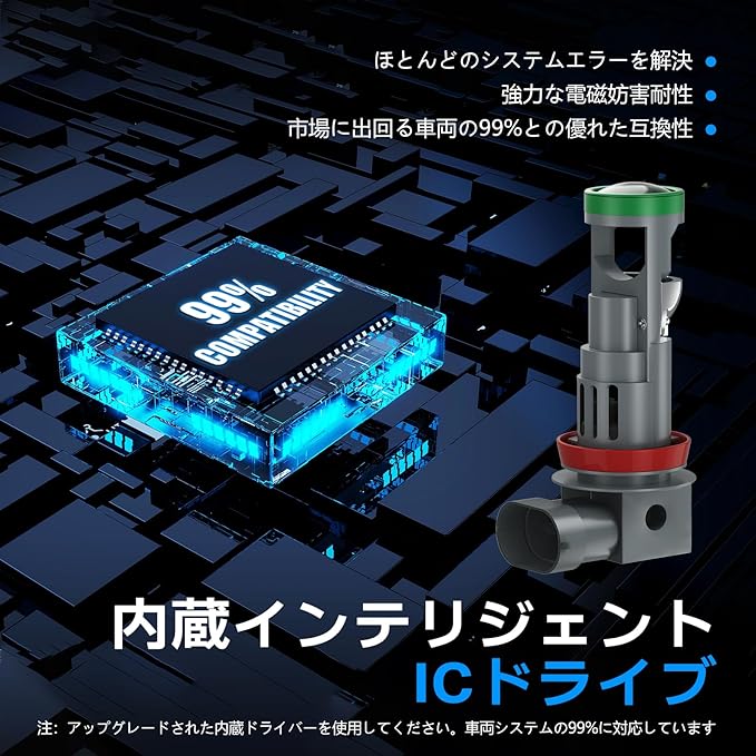 保証とサービス - 2個入り H8/H11 LEDヘッドライトバルブ ホワイト。内蔵スマートICドライバーにより、99%以上の車種に対応可能です。ただし、ごく一部の特殊車種ではH11 LEDバルブ使用時にメーター異常表示や点滅現象が発生する可能性があります。該当する問題が発生した場合は、お気軽に当社までご連絡ください。24時間以内に返信し、解決に努めます。