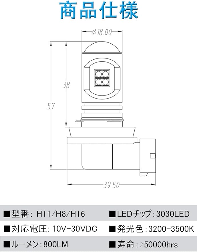超高輝度 全方位照射:このh11 ledフォグランプ超高発光効率の3030SMD LED素子12連搭載。上部は4連、周りは8連、拡散レンズ付きで光線を集中でき、照射距離を増やせる、本気の360 全方位照射でき。市販のハロゲンより省エネルギーの上で、明るさは大幅にアップ!