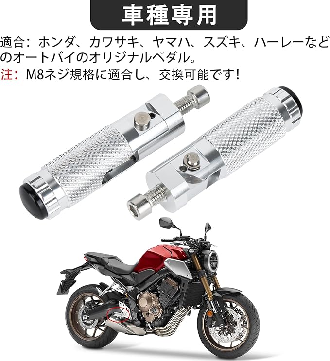 PSLER 1ペア M8 バイク ペダル 汎用 フットペグ ステップ-フロントフットレスト バックステップ タンデムステップ 8mmネジ 左右セット