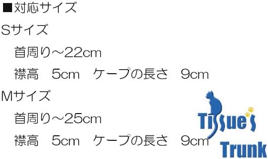 Sサイズ 首周り~22cm 襟の高さ・5cm ケープの長さ・9cm