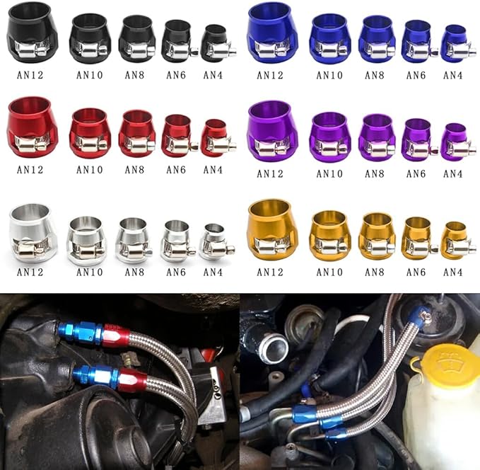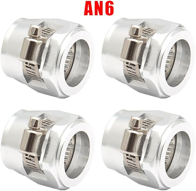 ノーブランド品 4ピースの長持ちコンポーネントアルミニウム六角ホースフィニッシャークランプ - 取り付けが簡単で強力なホースエンドフィニッシャー, 銀, AN6.4本