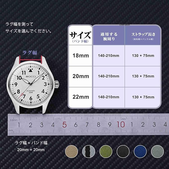 [WOCCI] 時計ベルト ナイロン 18mm 20mm 22mm 腕時計バンド ダブルホール2段ナイロンストラップ Quick Release