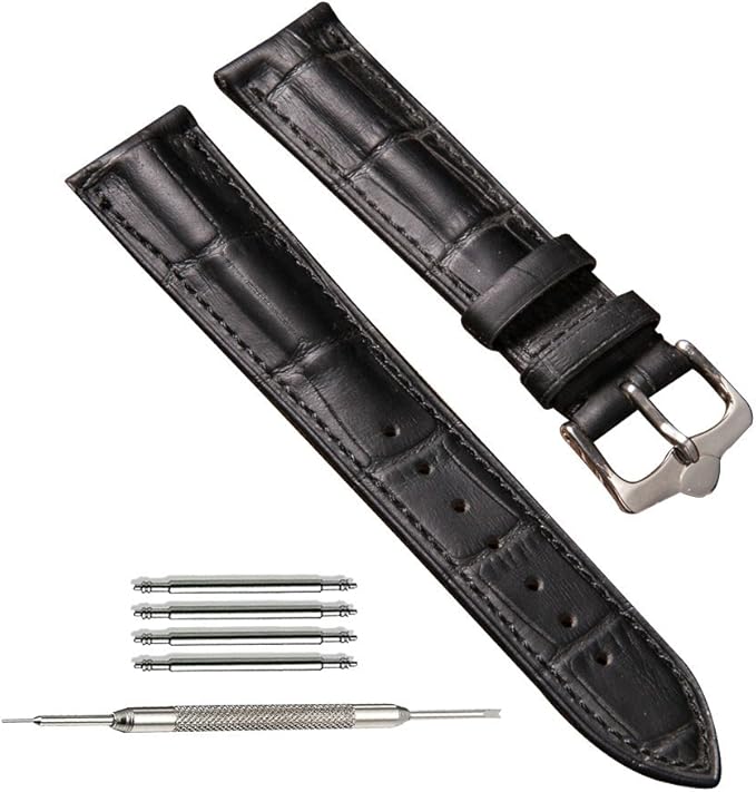 22mm 時計バンド 腕時計のバンド 12mm 14mm 16mm 18mm 20m 22mm 時計ストラップ 本革 替えベルト 替えバンド ベルト 交換 耐水性 装着簡単 バックル 尾錠 (22mm, 黒い)