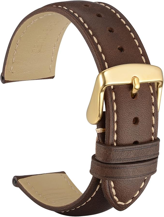 [WOCCI]時計ベルト 24mm替えベルト ヴィンテージ 本革腕時計バンド ダークブラウン ゴールドバックル