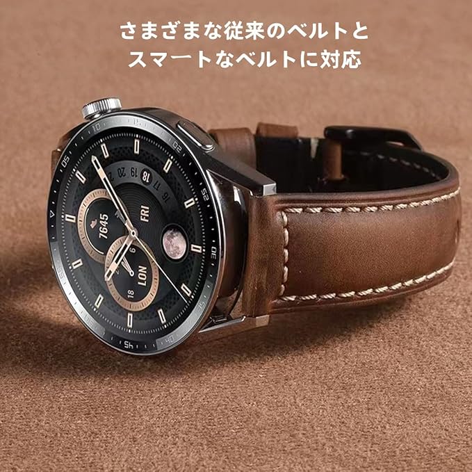 腕時計ベルト革 スマートウォッチベルト 時計バンド 本革ベルト 20mm 22mm 24mm 防水 シルバーブラック尾錠 レザー 工具付き クイックリリース 対応Samsung Galaxy/Huawei Watch