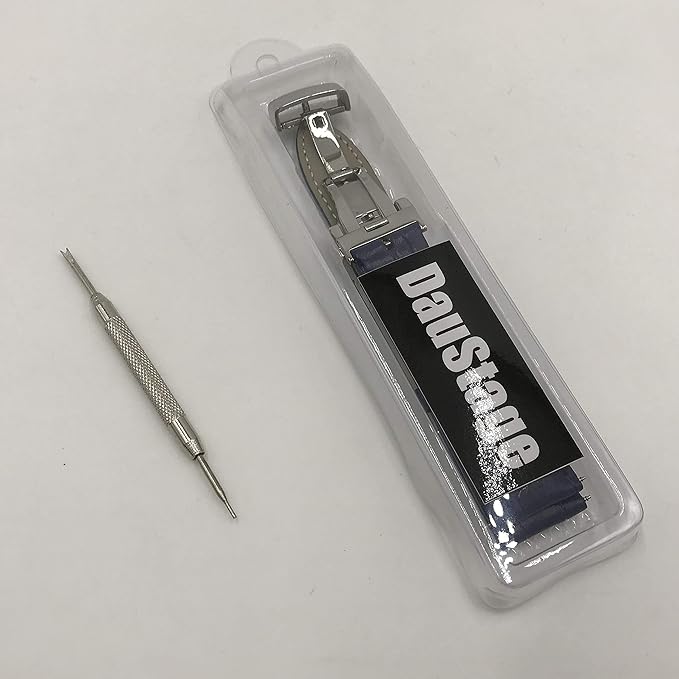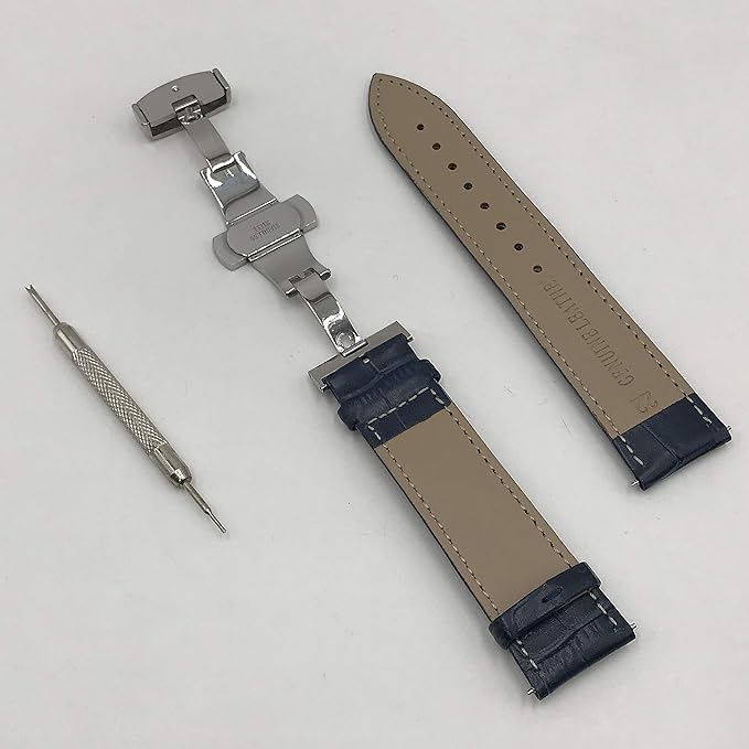 ワンプッシュ式 腕時計 バンド 本革 Dバックル 観音開き クロコダイル 型押し ベルト ばね棒はずし 付 (09 ネイビーブルー 18mm)