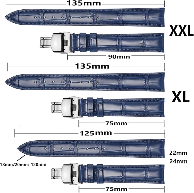 Moran本革時計バンドクイックリリースポリッシュ展開Dバックル、男性女性用,18mm-24mmカーフレザー交換用時計ストラップ、防水、防汗, 22mm-XL