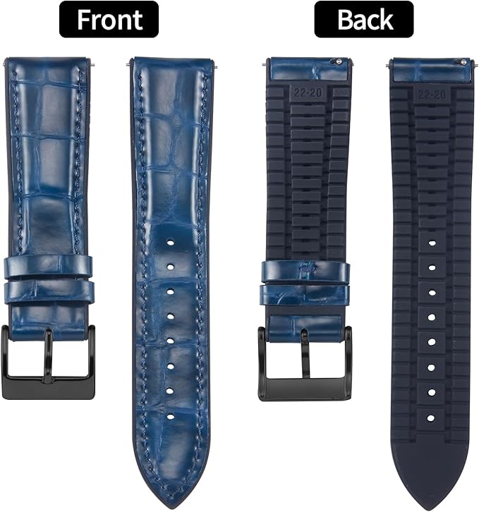 [BINLUN] 革時計ベルト クイックリリース レザー腕時計バンド ワニ革模様ウォッチバンド 内側シリコン製 通気性 交換ベルト メンズ レディース 20mm(ブルー/ブラック バックル)