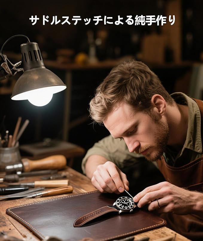 手作りの職人技:プレミアムレザー時計バンドは、熟練の職人によるサドルステッチで丁寧に手作りされています。すべてのステッチに高い品質と職人技が光ります