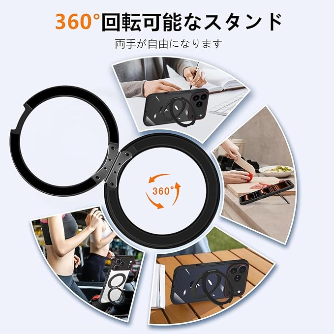 【スタンド機能、両手解放、自由満喫】多機能マジックスタンドは、折りたたんでグルーブに隠して収納させることができます。動画視聴、ビデオ通話、ゲーム、リモート会議、作業参照、ヨガ、オンライン授業、無限なシーンにスマホを活用出来、スマホに新しいライフスタイルを与えます。