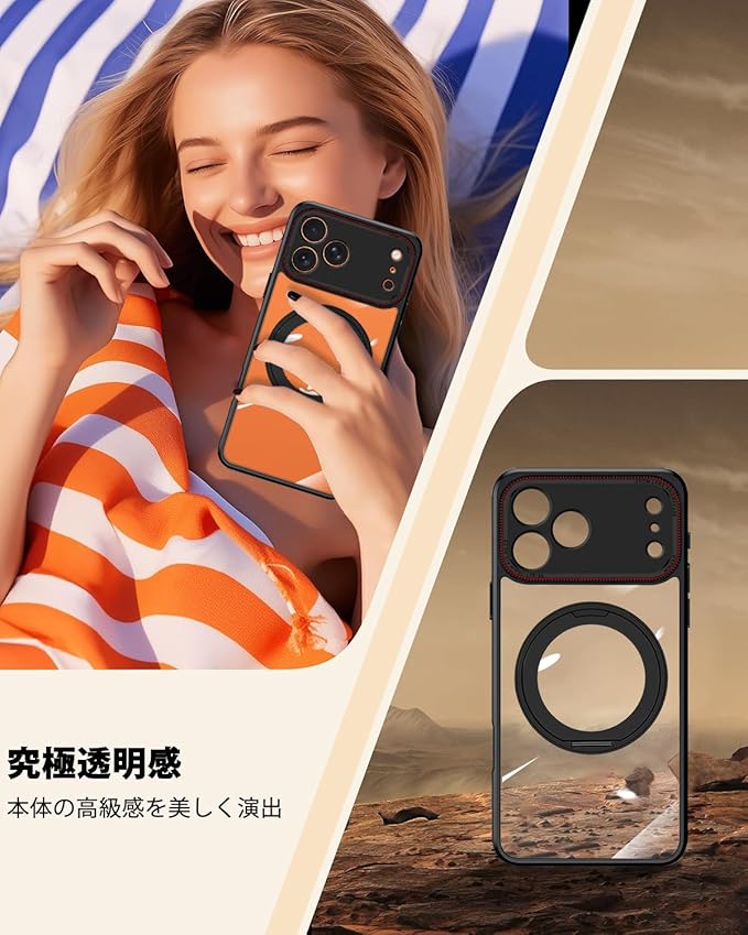 【対応機種】iPhone 17 Pro Max カバー(ご注意:ご購入前機種をよくご確認くださいね。間違った機種の購入による使えないことを避けてください)。本体にぴったりフィイットするよう設計し、精巧をきわめていることの孔位で、また、各ボタン位置にぴったりフィットし、つけたままでボタンが押しやすいし、充電するやイヤホンで音楽を聴くことにも支障なく使用でき、携帯へ負荷を掛けずに楽々装着できます。