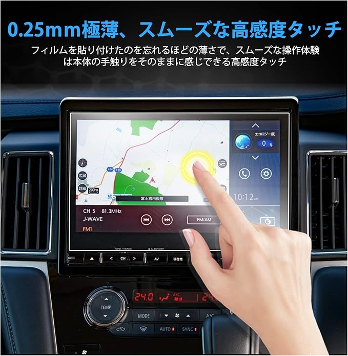 【HDクリア・極薄・高感度タッチ】極微細なナノ粒子の構成のナノ製フィルムで、99.9%の高透明、0.25MM極薄、保護フィルムの装着を忘れてしまうの薄さでナビの画像を完璧に映す。スムーズな操作体験は本体の手触りをそのままに感じできるほどの高感度タッチ。