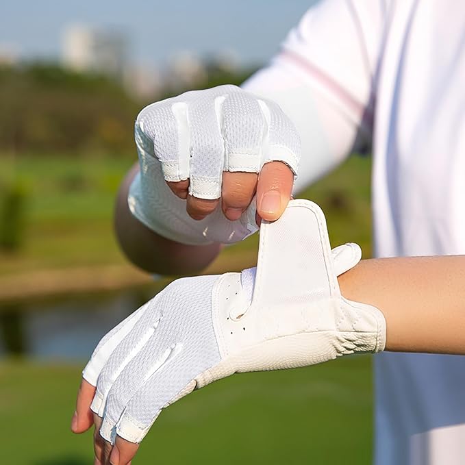 ゴルフグローブ レディース 両手 指先カット グローブ 手袋 通気性 メッシュ 高いグリップ力 UVカット 伸縮性 ソフト ストレッチ生地 耐摩耗性 調整可能 滑りにくい ゴルフ アウトドア シンプル 夏 おしゃれ ホワイト