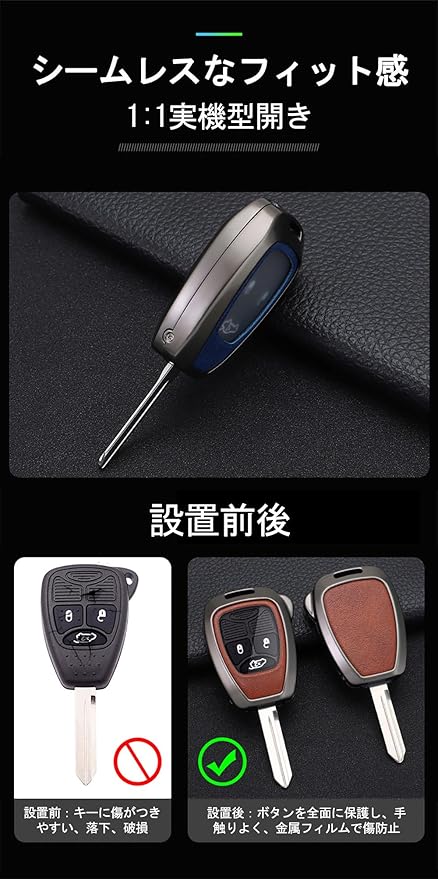 [TECART] ジープ専用 キーケース キーカバー キーホルダー Jeep専用 ラングラー JK クライスラー チェロキー Liberty Compass などに適応 スマートキーケース レザー+アルミ合金 23456ボタン | LEAD-SHOP
