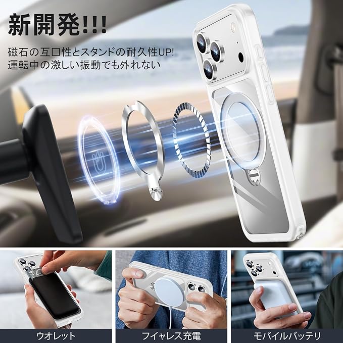 【MagSafe対応&強力磁力】 360度内蔵マグネットでMagSafeアクセサリーを強力吸着。安定した充電も可能。※Qiワイヤレス充電非対応/MagSafeウォレットの「探す」機能非対応。