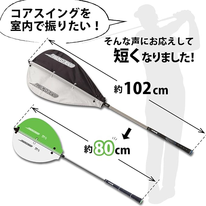 【LAGトレーニングシリーズ】【女性やジュニアゴルファー、ゴルフ初心者におすすめ!】藤田寛之プロと共同開発した”コアスイング(品番:GV0233)”を室内練習にも最適なサイズにリニューアル!コアスイングに比べてシャフトが短く、かつ羽根部分の面積を小さくすることで、力が弱い方でも振りやすく、室内でも安心して練習できます!「体で振る」が自然に身につくスイング練習機で確実に飛距離アップ!布製の羽だから、軽いのにしっかりと空気抵抗を感じ、体幹を鍛えられます。体を使わなければうまく振れないため、自然に正しいフォームが身につきます。
