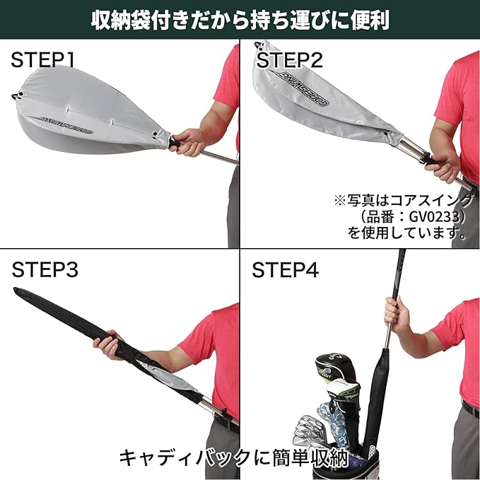 【コンパクトで持ち運びに便利】専用のカバー付き!傘のように簡単に折り畳めて、キャディバッグに収納できます。練習場での素振り練習はもちろん、コースに持参してラウンド前のウォーミングアップにもおすすめです。