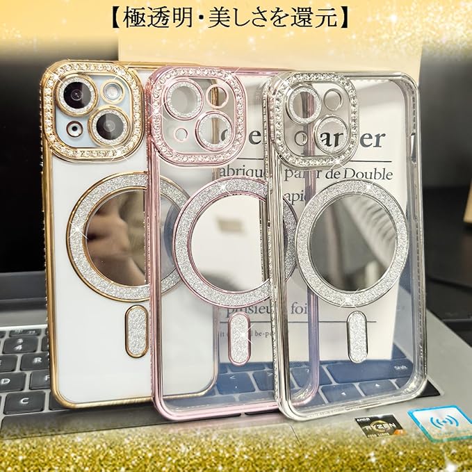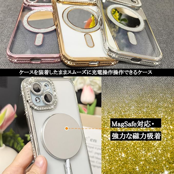 YUYIB スマホケース 対応 MagSafe対応 クリアケース 透明 メッキ加工 ドリル きらきら ブリンブリン かわいい ストラップ穴あり おしゃれ 軽量 薄型 衝撃吸収 女性 携帯電話カバー