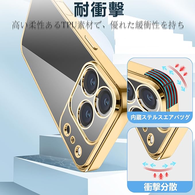 【おしゃれなデザイン】フレームは3層メッキ加工技術と超微細なレーザー加工技術、によって設計iPhone本体の美しさを更に引き立て高級感のあるiPhone用のケース。 裏面は透明の為、本体の色をそのまま映し出すことができ端末のオリジナルカラーを損ねません。透明な背面はiPhone本来の美しさを示し、フレームのメッキはよりおしゃれに感じます。