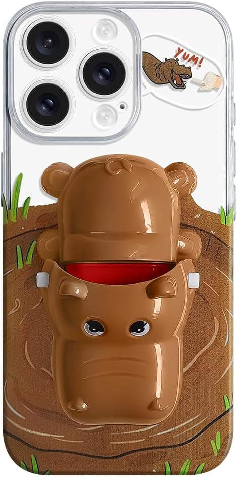 UnnFiko For iPhone 15 Pro Max ケース おもしろ カバ 動物 押すと動く 3D立体的 かわいい ソフト 透明 クリア アイフォン 15 Proケース スタンド可能 動物柄 スリム 軽量 iphone15promaxカバー カバパニック (iPhone 15 Pro Max, イエロー)