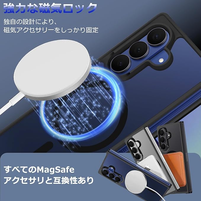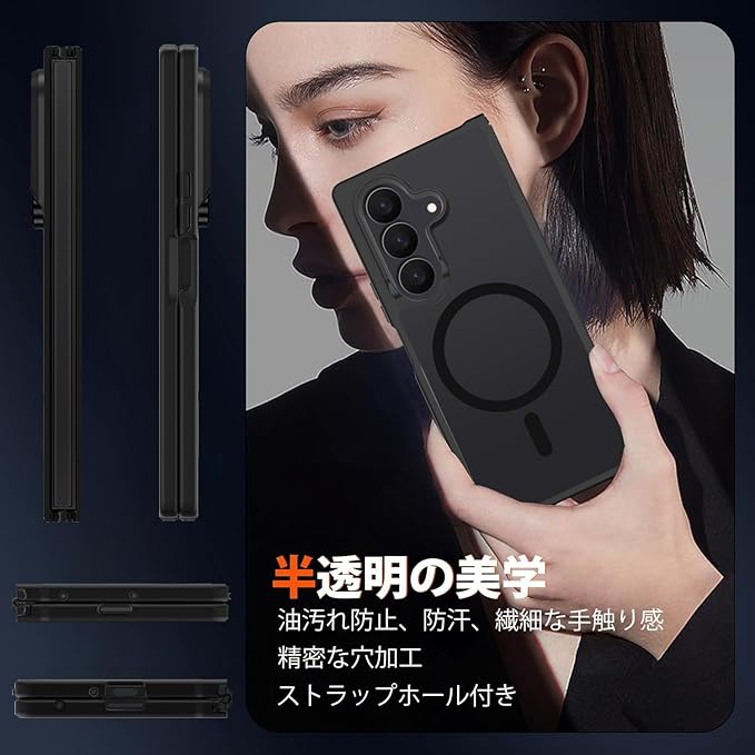 For Galaxy Z Fold 7 用 ケース MagSafe対応 マグセーフ ワイヤレス充電 半透明 マグネット搭載 TPU PC 落下防止 衝撃吸収 滑り止め 防塵 耐久性 黄ばみなし 耐衝撃 全面保護 レンズ保護 Samsung ギャラクシーZフォールド7 5G SC-56F / SCG34 用 カバー マット ブラック