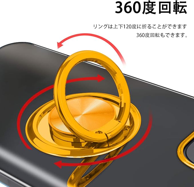 iPhone 13 Pro Max 用 ケース リング付き クリア 耐衝撃 スタンド機能 透明 TPU 車載ホルダー対応 落下防止 防塵 薄型 軽量 一体型 変形防止 全面保護カバー アイフォン用 ケース 金 W-YXZH-35-06
