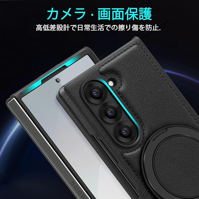 Galaxy Z Fold7 5G 用ケース Magnetic対応 リング付き 耐衝撃 レンズ保護 ギャラクシーゼット フォールド7 5g 用ケース マグネット搭載 360 回転 PC+PUレザー 衝撃吸収 スタンド機能 黄変防止 シンプル スマホカバー 青 J15-15 CP