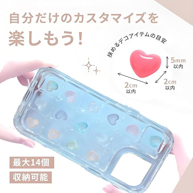 【透明感が高くでぽこぽこスマホケース】透明感が高くで ぽこぽこスマホケースは、個性を存分に表現できるアイテム。ケースには最大14個のスペースがあり、その中におはじきやビーズ、デコ系アイテムを自由に詰め込めます。あなたの好きなアイテムでオリジナルのデザインを楽しんでください! 【シャカシャカできる】ケースを振ると「シャカシャカ」と心地よい音が鳴ること!振るたびに音が鳴るので、遊び心たっぷりのアイテムとして、周囲の人々とシェアしたくなること間違いなしです。