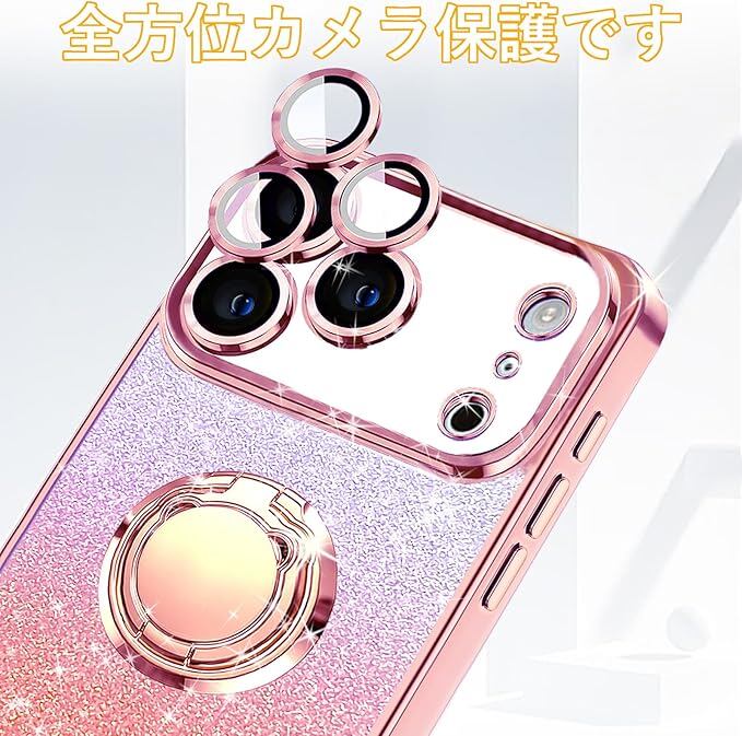 iPhone 17 Pro Max ケース ダブルリング付き グリッターカード&リストストラップ 17 Pro Max カバー 軽量薄型 キラキラ デザイン可愛い おしゃれ 女子向け レンズ保護 iphone 17 Pro Max スマホケース - ローズゴールド
