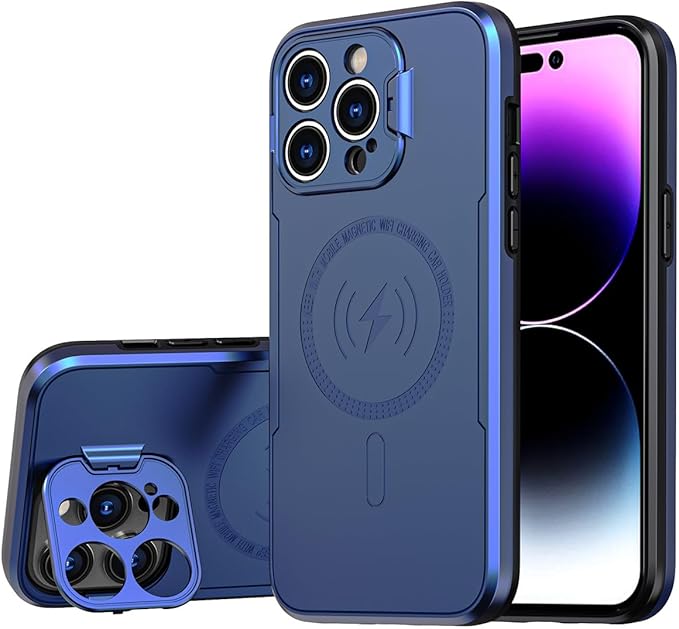 【レンズ保護+スタンド】カメラレンズ付近にスタンド機能を内蔵したiPhoneケースです。レンズのカバーを開くと、スタンド代わりに使うことが可能。MagSafe充電器やアクセサリーに干渉せずスタンド機能を使えるのもおすすめポイントです。ビデオ通話したり、動画を視聴したりする際に便利です。お好きな角度で視聴できます。スタンド使わない時は収納してレンズ保護になります。全然邪魔になりません。