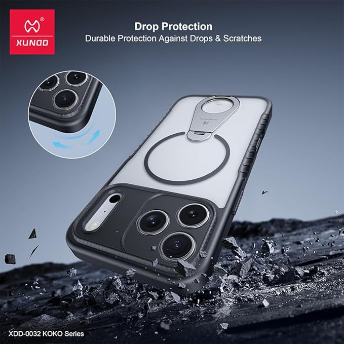 iPhone 17 Pro Max 用 リングケース 360度回転 MagSafe対応 半透明 半クリア マット仕上げ アイフォン17promax カバー ケース リング付き 縦置きスタンド カラフル ,白