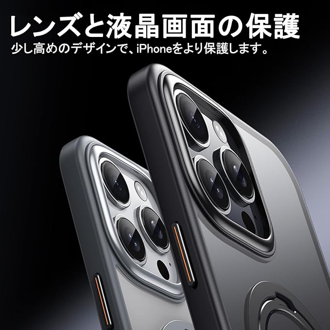 【全面保護】優れた保護性能,耐久性に優れた、傷がつきにくい,衝撃吸収性の高いPC+TPU素材,衝撃やキズ、埃などからしっかりとスマホの背面を守ります。レンズの位置でカバーの高さを少しずつ上げることで、レンズをよりよく保護することができます。